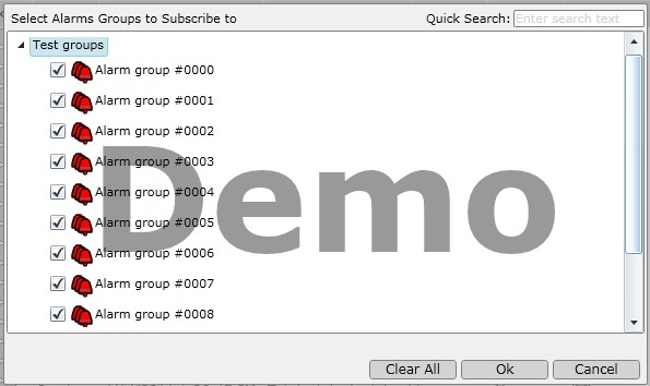 10. Subscribe to newly created alarm groups in Alarm Demo application, either using "Subscribe..." menu command: